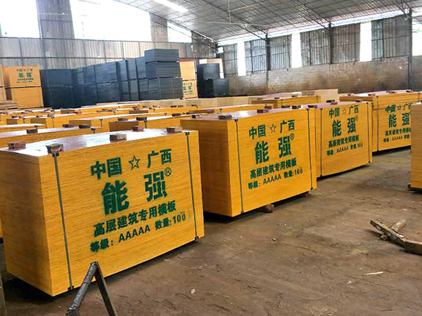 涂膠、合層處理:一張成型的廣西建筑模板,都是采用了多層木板材采用涂膠方式進行粘接在一起的,設置有專門的滾膠機,將木板材通過灌膠機,板材的正反面都會被均勻的涂抹膠層,將涂有膠層的木板材平整的放置在模板的表面模板上面,均勻的進行鋪蓋6-10層(根據需要)即可。